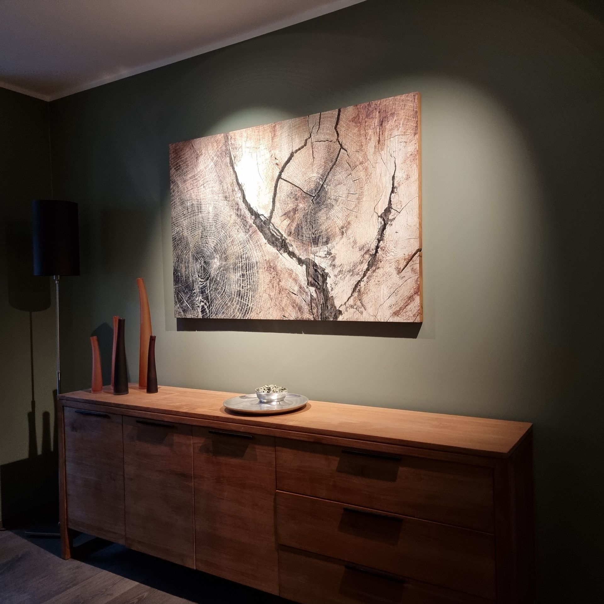 Dark fumed oak is creating a warm contrast to the metal and glass surfaces. The cement coating of the wall and floor surfaces in a pleasant light grey offers cosy touch.