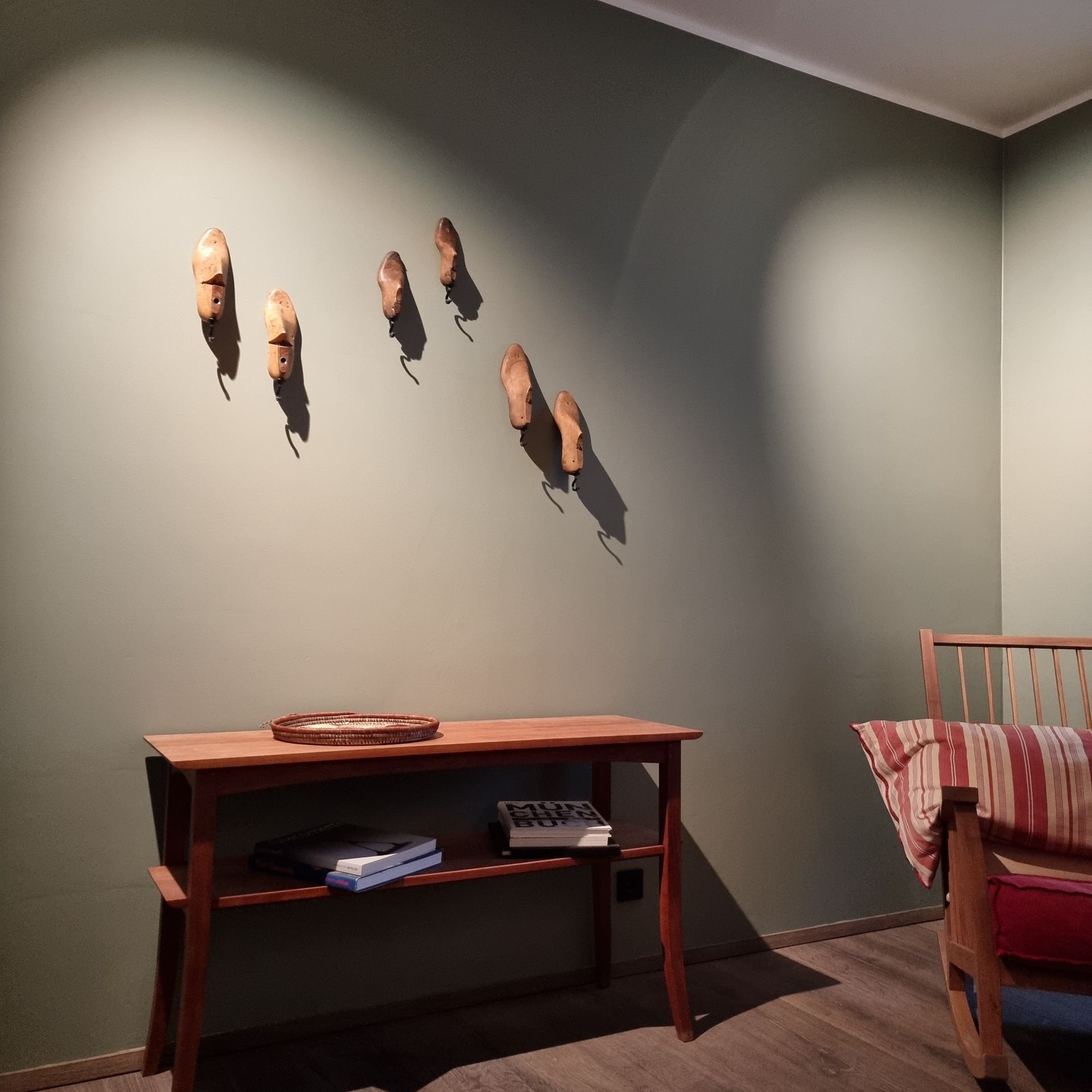 The hallway is forming the central area for all rooms. It is also offering space for art and music. Each room has its own character through an individual colour and interior design. The well planned lighting sets the adequate accents.